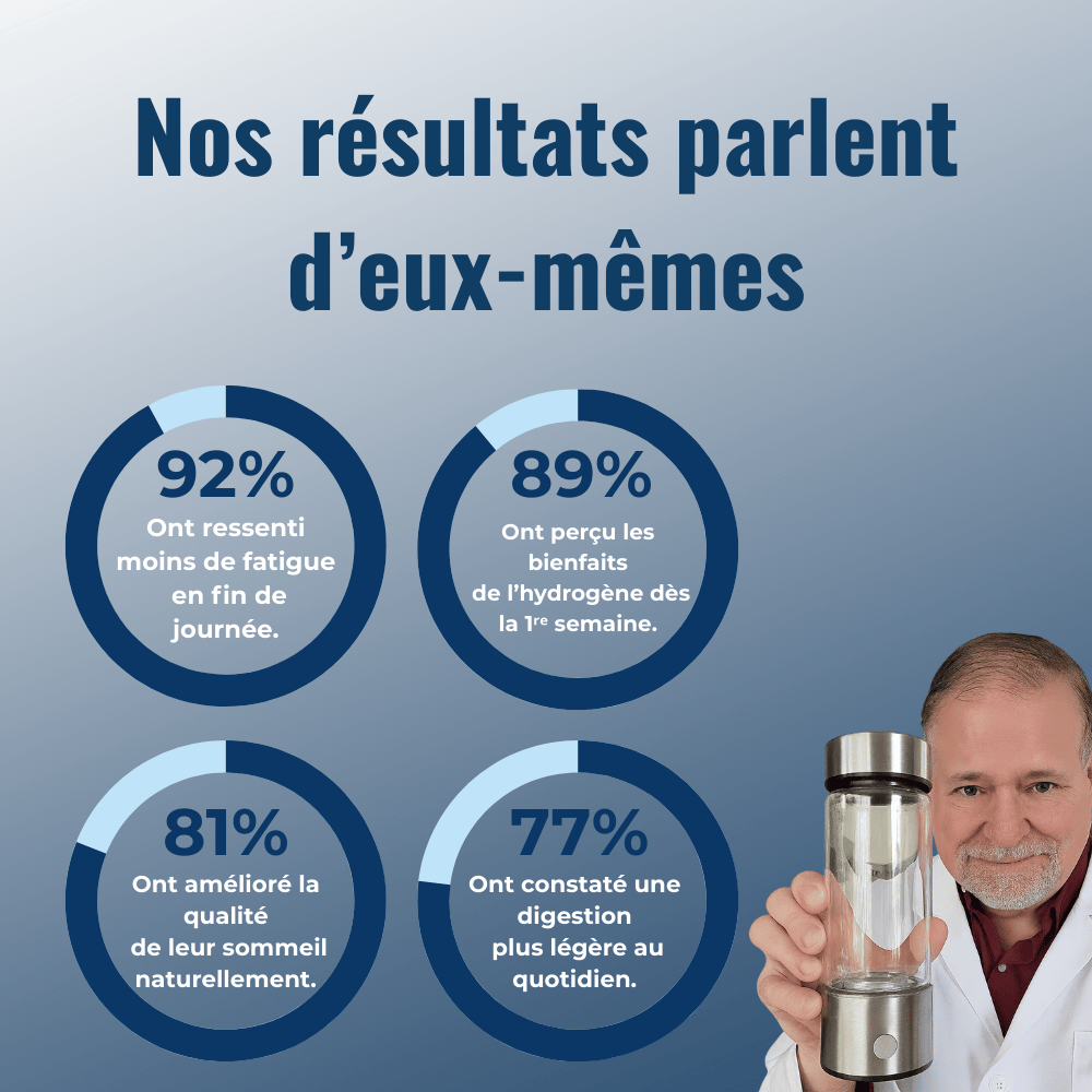 La majorité de nos acheteurs ont constaté les effets positifs de l’hydrogène dès les premiers jours, remarquant une amélioration rapide et encourageante.